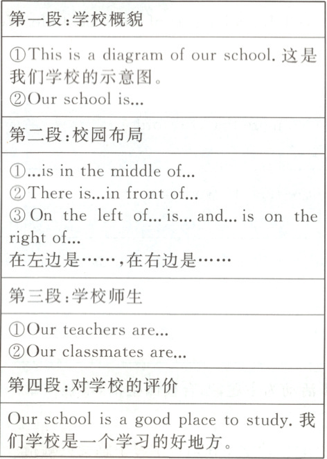 假设下面是你们的校园示意图,请你根据示意图用英语来介绍你们的学校。