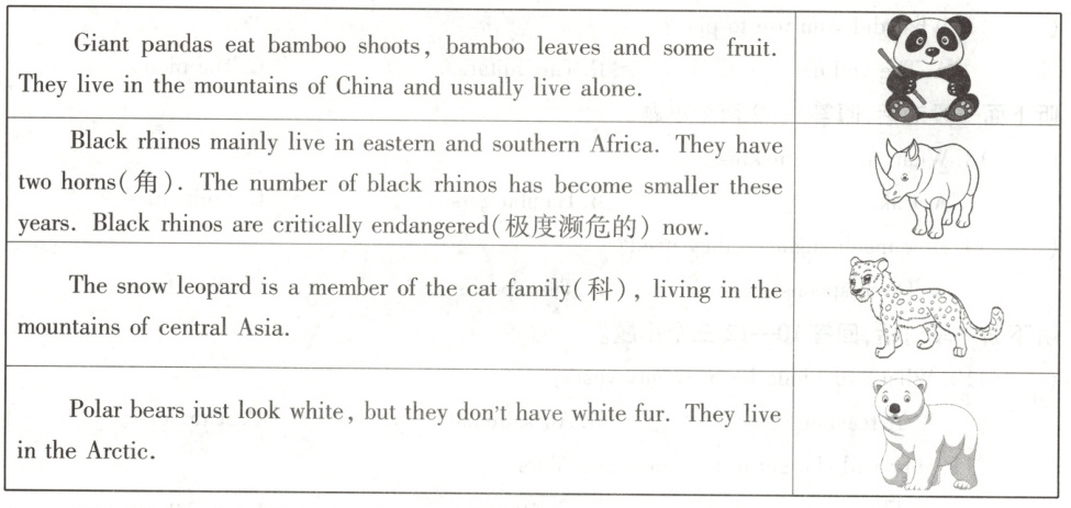 )22. Where can people find black rhinos?A. In the Arctic.