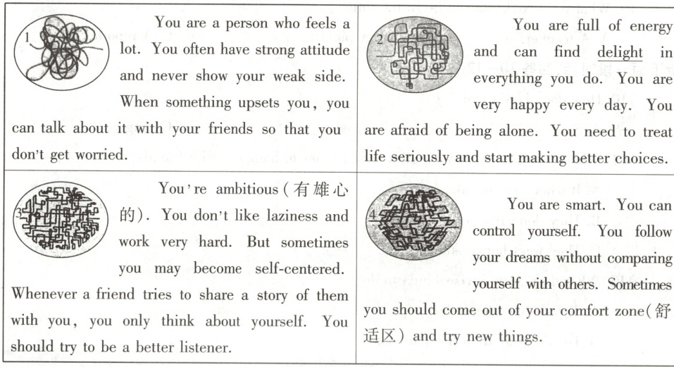 Look at the pictures. Which doodle(涂鸦) do you like best? The one you choose may say something about your character(性格).