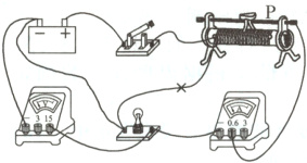 (2) 接通电源,闭合开关后,无论怎样移动滑片P,小灯泡均不发光,电流表指针不偏转,电压表指针有明显偏转,说明电压表与电源之间的电路连接是