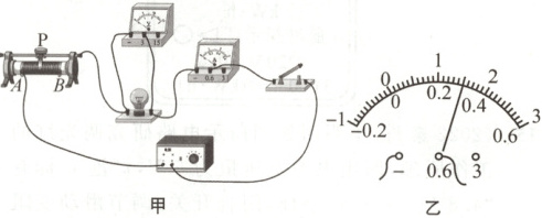 .(3) 排除故障后,重新开始实验,电源电压保持不变,闭合开关,电压表示数为 0.5 V,电流表示数为 0.12 A;移动滑片P,当电压表示数为 2.5 V时,小灯泡正常发光,电流表示数如图乙所示,为