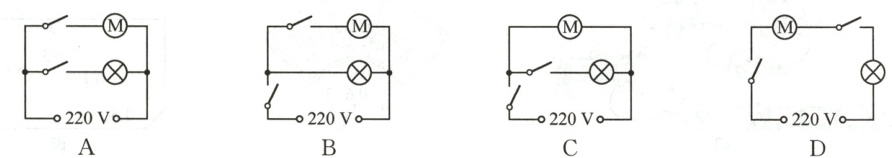 7 家用抽油烟机装有排气扇和照明灯,使用时它们既能同时工作又能单独工作.下列电路符合要求的是