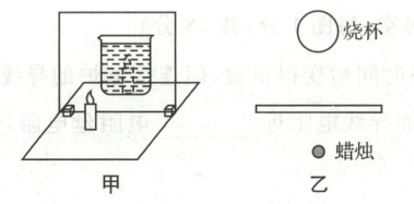 18 如图甲所示,将蜡烛和装满水的烧杯分别放在玻璃板两侧,点燃蜡烛,向玻璃板看去,发现“蜡烛”在烧杯附近燃烧.若蜡烛与烧杯的位置如图乙所示,为了使像成在烧杯中央,可采取下列两种方法:①保持玻璃板和烧杯不动,蜡烛应向