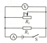 本题难度适中,运算量较大.1.分析电路为并联电路,并联电路各支路电压与总电压相等,利用欧姆定律求出通过R₁的电流.2.通过R₁的电流是不变的,电流表示数不能超过3A,可求出通过R₂的最大电流,由欧姆定律求出R₂的最小值.3.并联电路各支路电压与总电压相等,总电压不变,所以电压表示数不变.4.当电流表示数最大时R₂最小,此时R₂的功率最大,当R₂最大时,R₂的功率最小.