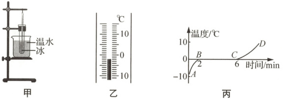 ℃.(3) 冰在加热过程中温度随时间变化的图像如图丙,加热到第3 min时,冰的状态为