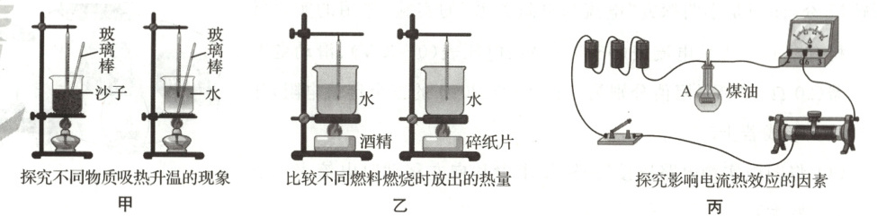 (填写图号)。(2)实验甲中,发现沙子和水加热相同时间,沙子温度上升得较多,由此可以判断