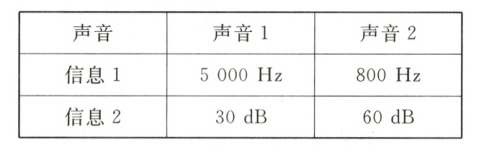 2 某次,设置在深山中的声音监测器测到两个声音信息,数据记录如表,则 (