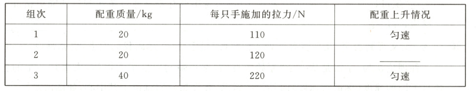 组次 配重质量/kg 每只手施加的拉力/N 配重上升情况