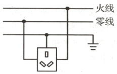(2)三孔插座的接法,依据安全接线口诀“左零右火上接地”,上孔接地线;左孔接零线;右孔接火线;