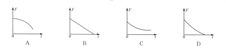 8 如图所示,有一个一端固定在墙壁上的可绕O点转动的杠杆,在A点悬挂一个装有水的敞口水杯,在B点用竖直向上的拉力F使杠杆在如图所示的位置保持平衡.拔下杯底的塞子,则拉力F随时间t变化的图像是