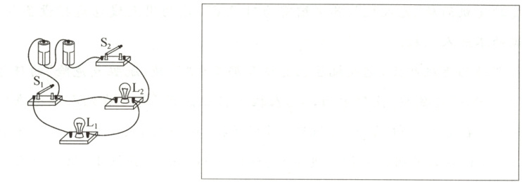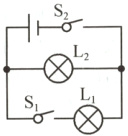 解析:由实物图可知,电流从电源正极流出,一路经过$L_{2}$直接经过$S_{2}$到电源负极,另一路经过开关$S_{1}$和$L_{1}$再经过$S_{2}$到电源负极,故两灯并联,开关$S_{1}$控制$L_{1}$,开关$S_{2}$在干路中,控制整个电路,且靠近负极,由此画出电路图.