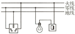 (3)家庭电路中,灯泡和火线之间连接开关,再由灯泡接零线;三孔插座根据“左零右火、上接地”原则,单独接入家庭电路中。