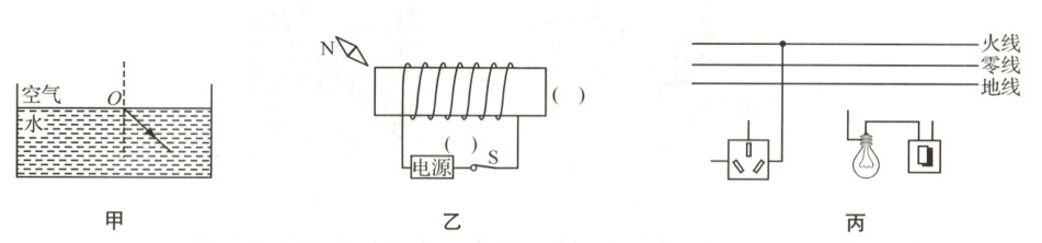 (3) 在图丙中,用笔画线代替导线,将插座、开关和灯泡正确连入家庭电路.