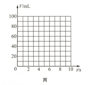 ① 依据所测数据,在图丙中画出量杯中水的体积 V 与时间 $t$ 的图像.