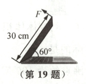 19 笔记本电脑在人们日常生活中起着重要的作用,如图所示是一个笔记本电脑的侧面图,用始终与电脑屏幕垂直的力$F$掀开屏幕到竖直位置的过程中,力$F$