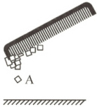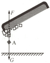 26 (2分)一把带电塑料梳子靠近桌上的一些小纸片,如图所示是纸片A离开桌面上升时的情景.请在图中画出纸片A所受重力$G$和吸引力$F$的示意图.
