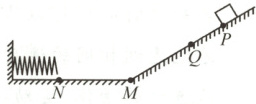 23 如图所示,粗糙程度相同的斜面与水平面在$M$点相连,弹簧左端固定在竖直墙壁上,弹簧为原长时右端在$N$点.小物块从斜面上$P$点由静止滑下,与弹簧碰撞后又返回到斜面上,最高到达$Q$点.下列说法正确的是