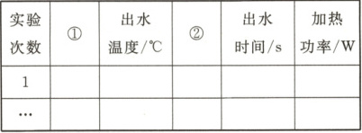 ③ 保持水的初温和出水量不变,改变出水温度,测量出水时间并记录在表 1 中;