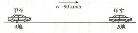 (1)A、B两地之间距离为$s_{AB}= vt = 90km/h×1h = 90km = 90000m。$
