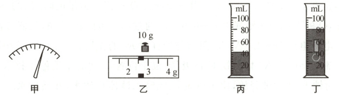 (3)在量筒中装入适量水,如图丙所示,水的体积为40mL。