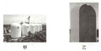 2025年5月,我国首批五座9 000吨级气膜粮仓充气成型,标志着中国第四代新型粮仓正式进入实践应用阶段.每座气膜粮仓直径为24 m、高度达33 m.结构如图乙所示,外层为PVDF材料的白色膜材层,反射太阳光且防水;中间层为聚氨酯材料层,导热系数远低于混凝土建材;内层为钢筋混凝土土层,起主要支撑作用.气膜粮仓相当于给传统粮仓“穿上了一件雨衣和一件羽绒服”,其储存粮食的气密性和保温性都大幅提升.投入使用后,气膜粮仓集成氮气气调技术,将高纯度的氮气注入粮堆内部.均匀分布的传感器实时获取粮食温度、湿度等信息.气膜粮仓就像白色安全卫士,守护着粮食安全.