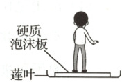 20 (10分)王莲拥有水生植物中最大的叶片,莲叶边缘上卷,在叶脉通气组织支撑下,莲叶几乎不浸入水中。王莲进入观赏期时,植物园向游客开设“莲叶载人”的体验活动。为保证安全,莲叶浸入水中的深度不能超过其边缘卷边高度的25%。工作人员将面积为$1.5\ m^2$、质量为3 kg的硬质泡沫板放在底面积为$2\ m^2$的莲叶中央,该莲叶卷边高度为16 cm,游客站立在硬质泡沫板上,体验“一叶当舟”的乐趣,如图所示,某游客质量为60 kg,双脚站立时与地面的接触面积为$4×10^{-2}\ m^2$。求:($g$取10 N/kg,$\rho_{ 水}=1.0×10^{3}\ kg/m^3$)