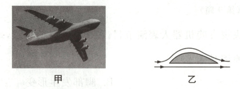 解析:流体在流速大的地方压强较小,在流速小的地方压强较大.由图乙可知,飞机的机翼形状是上凸下平,飞机飞行时,机翼上方空气流速较大,压强较小,机翼下方空气流速较小,压强较大,形成向上的压强差,产生向上的升力.