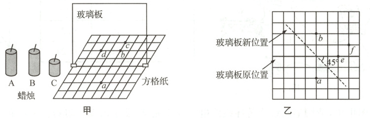 (2)如图甲所示,玻璃板与桌面垂直放置,将蜡烛 A 点燃后放在玻璃板前 a 处,再将蜡烛