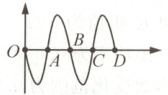 10. (2024 常州)英国科学家研究发现,用特定波长的红光持续照射人体背部 15 min,可明显刺激人体线粒体,增加葡萄糖消耗,降低血糖水平.该技术有望用来帮助糖尿病患者通过非药物方式降低血糖.该红光的波形图如图所示,已知$OA=AB=BC=CD=335$ nm,则该红光的波长为 (