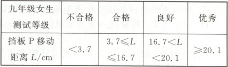V.下表为九年级女生“坐位体前屈”国家体质标准,若小华进行测试时电压表示数为 3 V,则她的测试等级为合格