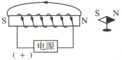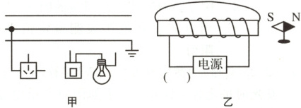 (2) (2022 无锡)根据图乙中小磁针静止时的指向,标出通电螺线管磁感线的方向和电源左端的极性(“+”或“-”).