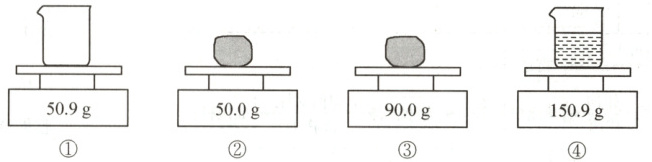 ④再将火山石浸没在装满水的容器中,用烧杯接住溢出的水,测出烧杯和溢出水的总质量$m_{4}$.