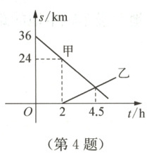 4. 甲、乙两人分别从 A,B 两地相向而行,他们距 B 地的距离$s$(km)与时间$t$(h)的关系如图所示,那么乙的速度是