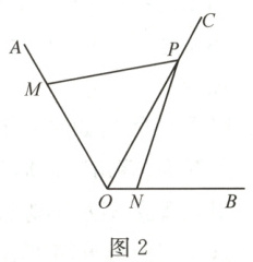 2. 如图,$OC$ 平分 $\angle AOB$,$P$ 为 $OC$ 上的一点,$\angle MPN$ 的两边分别与 $OA$,$OB$ 相交于点 $M$,$N$.