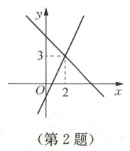 1. 已知二元一次方程组$\begin{cases}x + y = 3\\y - x = 1\end{cases}$的解为$\begin{cases}x = 1\\y = 2\end{cases}$,则在平面直角坐标系中,一次函数$y = -x + 3$与$y = x + 1$图象的交点坐标为 $\boldsymbol{( )}$