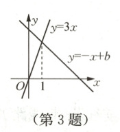 3. 一次函数$y = -x + b$和$y = 3x$的图象如图所示,则方程组$\begin{cases}y = -x + b\\y = 3x\end{cases}$的解为 $\boldsymbol{( )}$