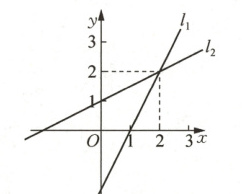 假设:若直线$l_1$经过点$(0,1)$和$(1,3)$,直线$l_2$经过点$(0,4)$和$(2,0)$(此处为常见例题假设,具体需根据图像调整)。