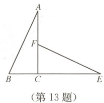 13. 如图,$\angle A = \angle E$,$AC \perp BE$,$AB = EF$,$BE = 10$,$CF = 4$,则$AC = \boldsymbol{$