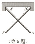 9. 如图,把两根钢条$AA'$,$BB'$的中点连在一起,可以做成一个测量工件内槽宽的工具(卡钳),若测得$AB = 5$米,则槽宽为$\boldsymbol{$