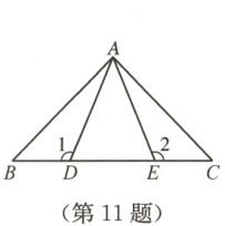 11. 如图,$AD = AE$,$BE = CD$,$\angle 1 = \angle 2 = 100°$,$\angle BAE = 60°$,那么$\angle CAE = \boldsymbol{$