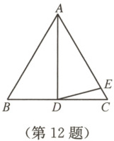12. 如图,在等边三角形$ABC$中,$AD$为$BC$边上的中线,点$E$在$AC$边上,连接$DE$,若$AD = AE$,则$\angle CDE$的度数为$\boldsymbol{$