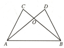 11. 如图,已知 AD 与 BC 相交于点 O,∠CAB = ∠DBA,AC = BD. 求证: