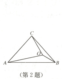 2. 如图,在△ABC中,∠CAB = ∠CBA = 48°,点O为△ABC内一点,∠OAB = 12°,∠OBC = 18°,则∠ACO的度数为