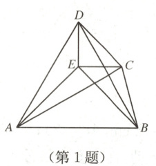 1. 如图,已知△ABE 与△CDE 都是等腰直角三角形,∠AEB = ∠DEC = 90°,连接 AD,AC,BC,BD,若 AD = AC = AB,则下列结论:① AE 垂直平分 CD;② AC 平分∠BAD;③ △ABD 是等边三角形;④ ∠BCD 的度数为 150°,其中正确的个数是 (