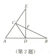 2. 如图,在△ABC 中,∠ACB = 90°,D 是 AB 上的点,过点 D 作 DE⊥AB 交 BC 于点 F,交 AC 的延长线于点 E,连接 CD,∠DCA = ∠DAC,则下列结论正确的有