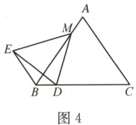 【拓展创新】如图 4,△ABC 是等边三角形,点 M 是 AB 上一点,点 D 是 BC 上一点,连接 MD,以 MD 为一边作等边三角形 MDE,连接 BE. 猜想∠EBD 的度数,并说明理由.