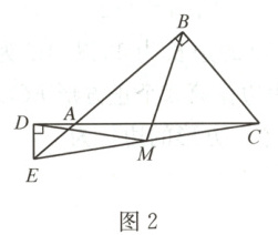 (2) 如图2,若点$E$在$BA$的延长线上,探究线段$BM$与$DM$及$\angle BMD$与$\angle BCD$所满足的数量关系并加以证明.