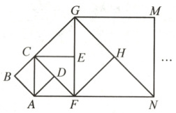 2. 如图,正方形$ABCD$的边长为$1$,以$AC$为边作第$2$个正方形$ACEF$,再以$CF$为边作第$3$个正方形$FCGH$,$·s ·s$按照这样的规律作下去,第$6$个正方形的边长为 (