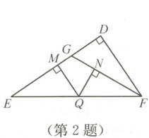 2. 如图,在$\triangle DEF$中,$\angle D = 90^{\circ}$,$DG:GE = 1:3$,$GE = GF$,$Q$是$EF$上一动点,过点$Q$作$QM \perp DE$于点$M$,$QN \perp GF$于点$N$,$EF = 4\sqrt{3}$,则$QM + QN$的长是 (