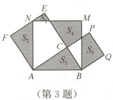3. 如图,以$AB$为斜边的$Rt\triangle ABC$的每条边为边作三个正方形,分别是正方形$ABMN$,正方形$BCPQ$,正方形$ACEF$,且边$EF$恰好经过点$N$。若$S_{3} = S_{4} = 6$,则$S_{1} + S_{5} =$